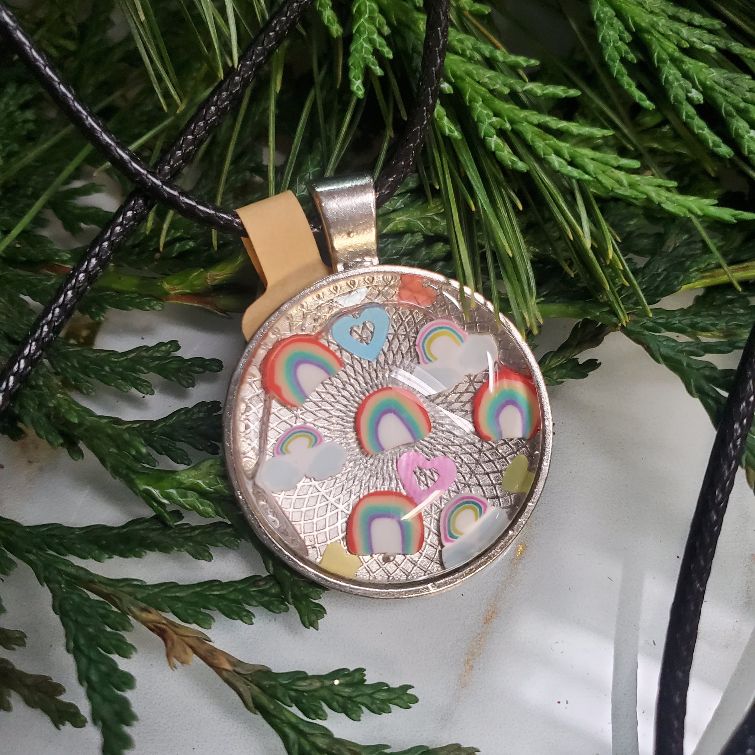 SHOP › rainbow drop Image 1 of 1 rainbow drop $15.00 Pendant on adjustable leather cord Purchase Added! Pendant on adjustable leather cord
